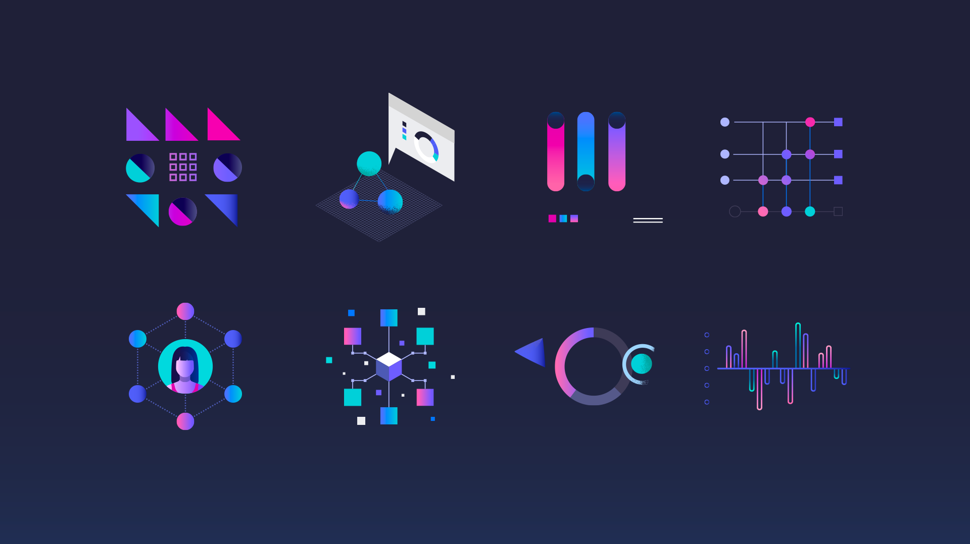 We created a series of graphic illustrations that hint conceptually at their technical origins while creating their own striking visual language.